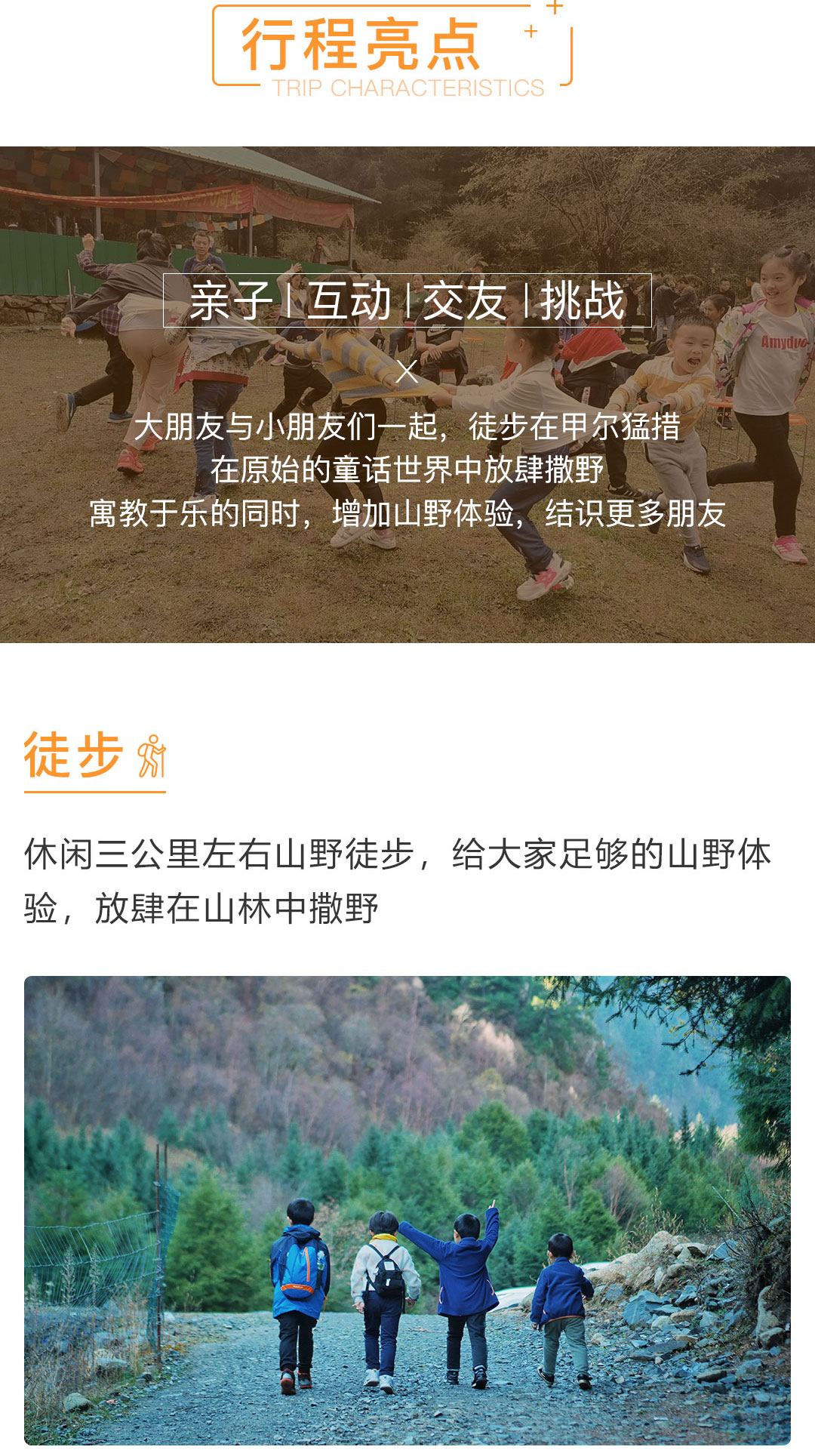 自然之美,四时皆有,大人往往自我盘桓在手机中,却责怪孩子的沉溺,趁秋高气爽,带着久违的期待,踏着秋风出游,来一场亲子森林探秘之旅。 你以为花钱才能得到的笑脸,只需花点心思! 旅行主题:亲子游主题; 景观亮点:森林徒步、特色铁板烧、亲子户外; 参团客群:4-60岁身体健康人士(未成年需要家长陪同); 团队人数:20人起成团,低于20人此团自动解散,所支付费用自动返回原账户; 集合解散:成都出发,成都散团; 特别告知:本产品全程纯玩无购物; 支付方式:在线支付+团上现付,详情请查看“费用包含”栏。